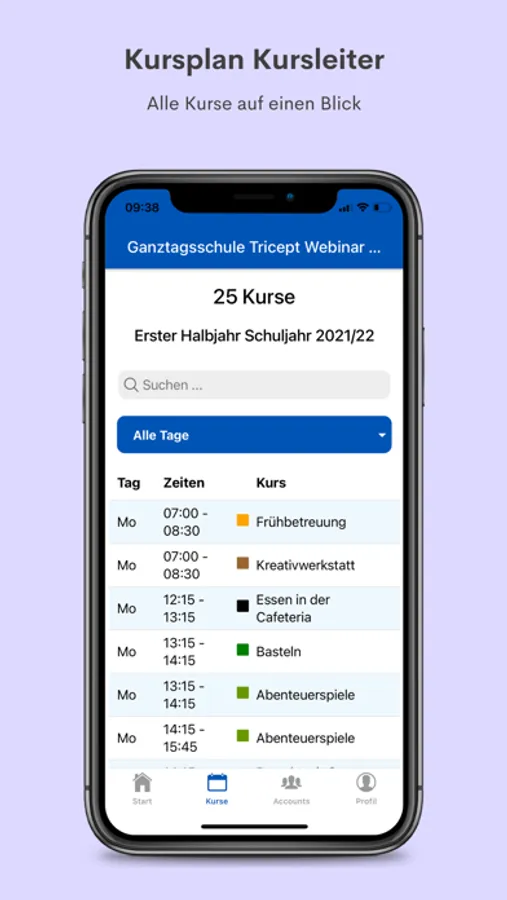Kursleiter oder Lehrer haben eine komplette Übersicht über ihre Kurse und deren Teilnehmer