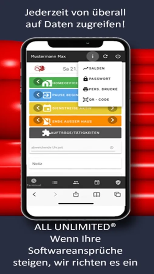 ALL UNLIMITED® – Die digitale Personal-Zeiterfassung variabel, erweiterbar und überall verfügbar, daher für jede Menge Einsatzmöglichkeiten die perfekte Lösung - die ideale Arbeitszeiterfassung-App für Ihr Unternehmen.