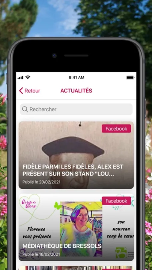 • Reprise automatique des actualités du site internet et de la page Facebook,