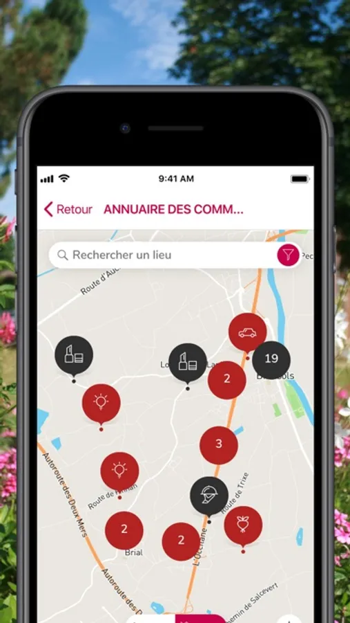 • Carte des commerces, assistantes maternelles, professionnels de santé avec les coordonnées pour les contacter,