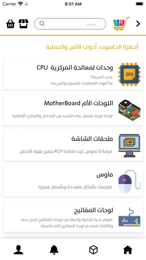 يمكن اختيار الصنف/الأصناف من خلال إضافتها لسلة المشتريات، وبعد ذلك يكمل العملية ويتابع حالة طلبه إلى أن يستلم الأصناف التي طلبها.
