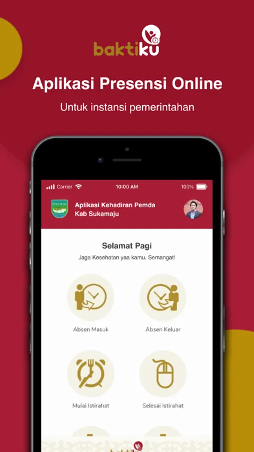 Baktiku siap membantu untuk memantau dan mengelola kehadiran pegawai mulai dari Anda yang berada di pemerintahan, instansi, sekolah atau lembaga di seluruh Indonesia. Cukup dengan absen selfie pegawai dapat mencatat kehadiran, jam lembur, aktivitas kunjungan dinas, dan tugas harian melalui aplikasi absensi Baktiku. Lebih higienis! Tak perlu antri lama untuk berbagi mesin absen fingerprint.