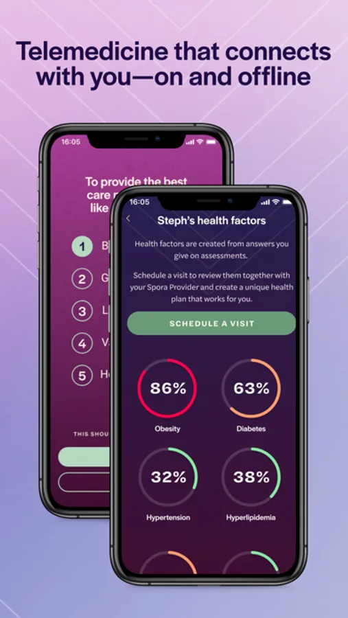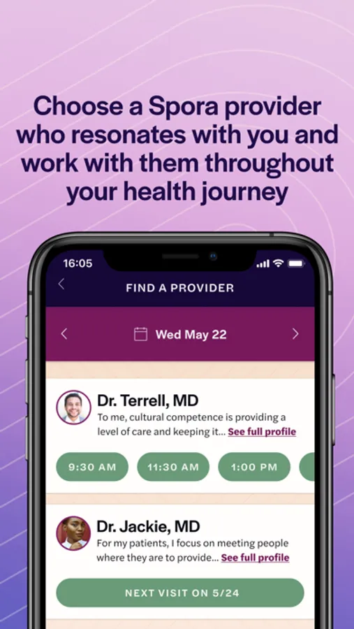 - Care when you need it - Need to see your Spora provider? Easily book a virtual visit as soon as the next day, or make the most of our app and message them directly to check in on your progress.