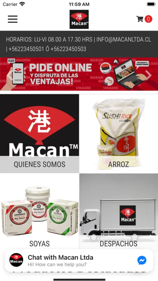 MACAN es una empresa dedicada a la comercialización y distribución de insumos para Restaurantes, Hoteles, Banquetería y Food Service. Especializada en la gastronomía japonesa, contando con el más amplio surtido de productos. Contamos con un centro de distribución que cumple con los más altos niveles exigidos de modo de asegurar la calidad de nuestros productos.