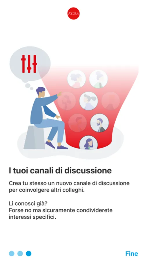 L'app di FCSA è lo strumento ad uso quotidiano che permette a ciascun socio di partecipare attivamente ad uno scambio continuo e in tempo reale di informazioni, pareri e commenti utili alla vita professionale.