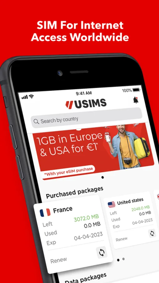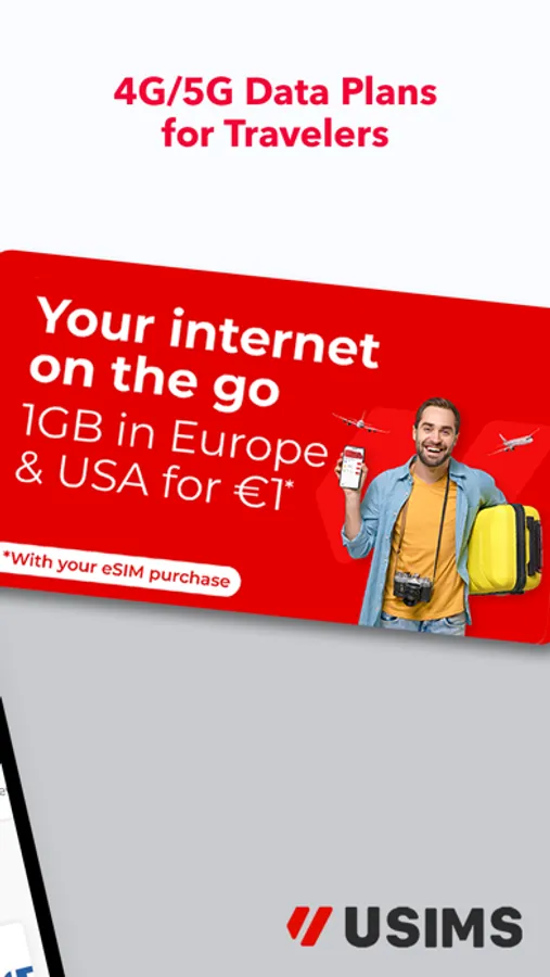 Download the USIMS eSIM app today and get 1GB of free data in the US and Europe with your first purchase. Get reliable travel internet on the go and save on data roaming costs abroad. Download your portal for affordable, worldwide, high-speed Internet connection with USIMS.