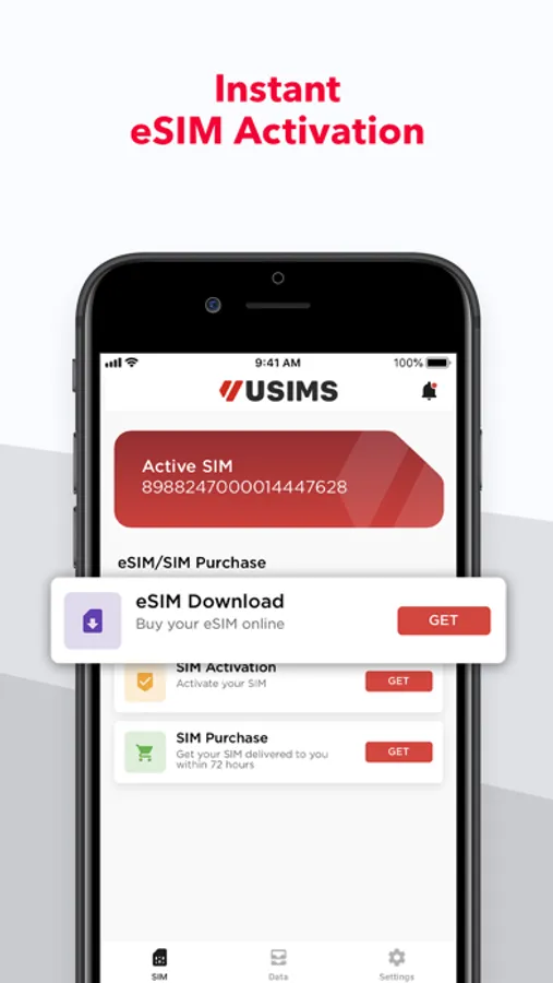Access mobile data worldwide without roaming charges with your own eSIM. Purchase your virtual SIM card directly from the USIMS app and it will be activated instantly. Then you can select and purchase a travel data plan for your trip. With the eSIM, you can enjoy ten days of free data roaming from the date of purchase.