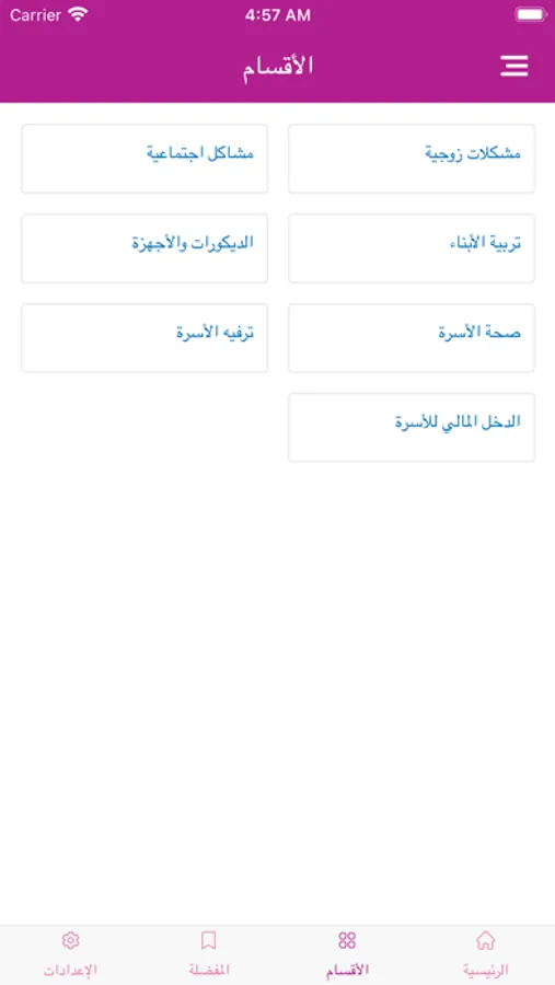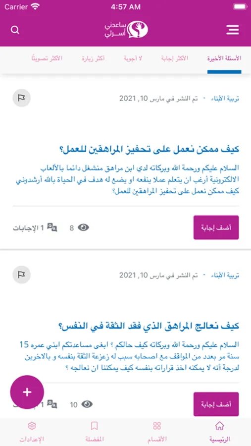 خدمة تفاعلية من خلال طرح الأسئلة المتعلقة بالمشاكل والاستشارات الأسرية في عدة أقسام: – مشكلات زوجية – مشاكل اجتماعية – صحة الأسرة – ترفيه الأسرة – تربية الأبناء – الديكورات والأجهزة – الدخل المالي للأسرة