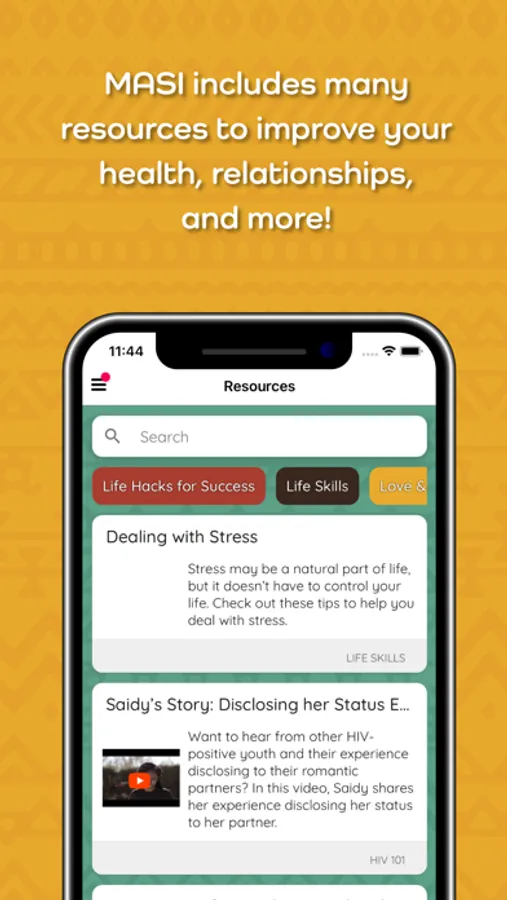 MASI is a research study app for South African adolescents that is designed to foster connections to a supportive community, offer tools for self-monitoring and habit formation, provide resources for goal-setting and action planning, and present engaging informational resources. MASI covers a range of health and wellness topics to support adolescents’ varying needs over time.