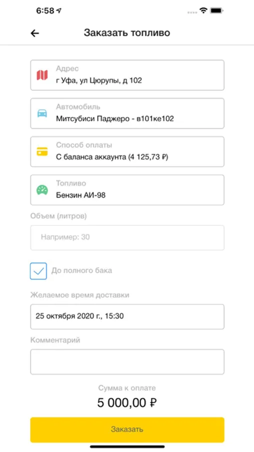 Мобильная АЗС - приложение, которое позволяет заправить Ваш автомобиль в удобном для Вас месте и в удобное время в г. Уфе.