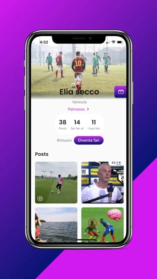 - catturare e condividere immagini e video che esaltano le tue esperienze calcistiche,con la possibilità di commentarle e pubblicarle indirizzandole in una delle sezioni presenti nella tab bar