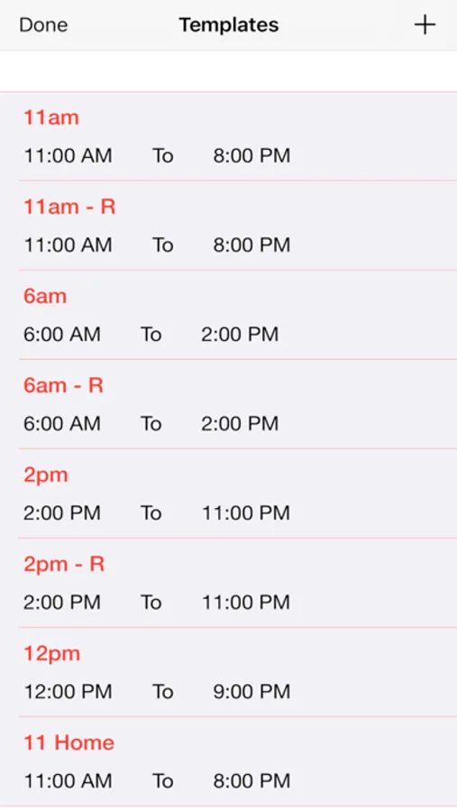 If you have several work "shifts", you can create them as default events and just click on them to have your schedule all set.