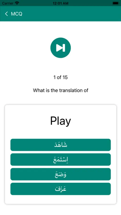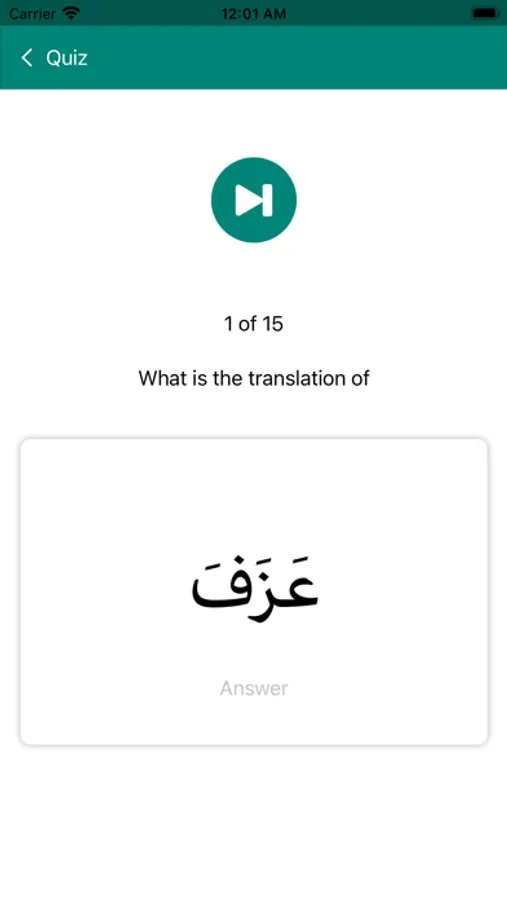 - Quiz, where you will have to translate a series of Arabic words into your language