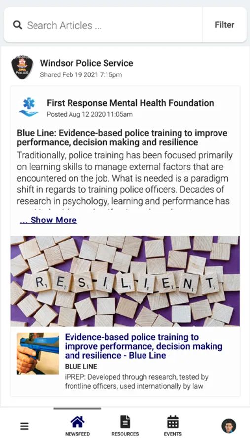 Windsor Police PeerConnect users have access to newsfeed articles, resources, and events related to mental health, wellness, culture, and belonging.