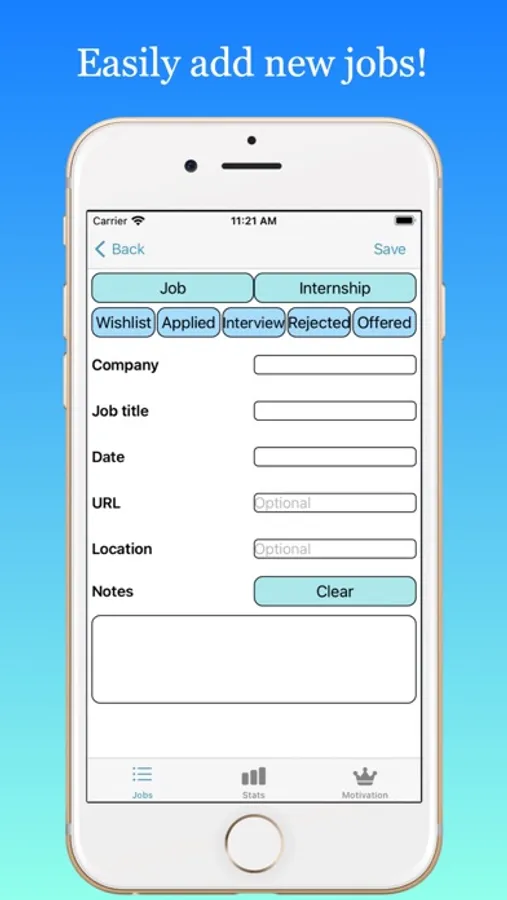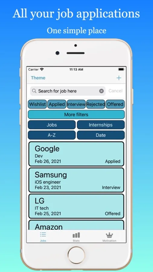 Take control and organize your applications! Forget about spreadsheets, paper documents or ever forgetting where you applied to again.