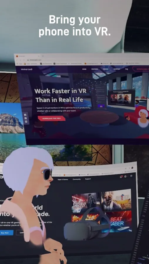 • FOCUS on your work with MASSIVE virtual screens in a distraction-free workspace in stunning virtual worlds!