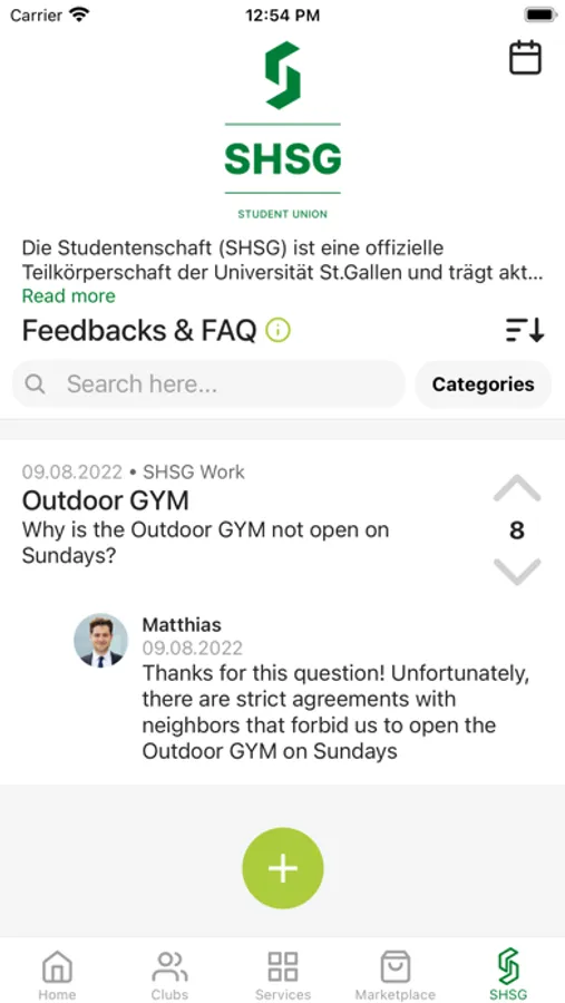 Welcome to the Campus App of the Student Union of the University St. Gallen (SHSG)!