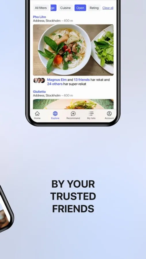 No more hours of research or scrolling through restaurant reviews made by unknown people. Choose your next food adventure by looking at where your friends are eating. Share what dishes to order, what wine to drink and where to go, for what occasion and with who.