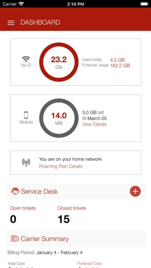 - Stay on top of data, roaming, and overall usage bill through the app giving you peace of mind at work