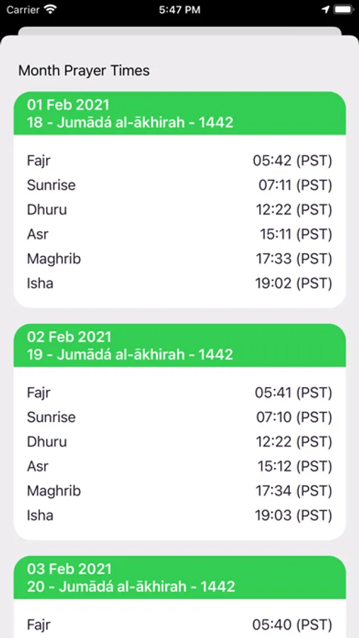- Complete Month Prayer Timings
