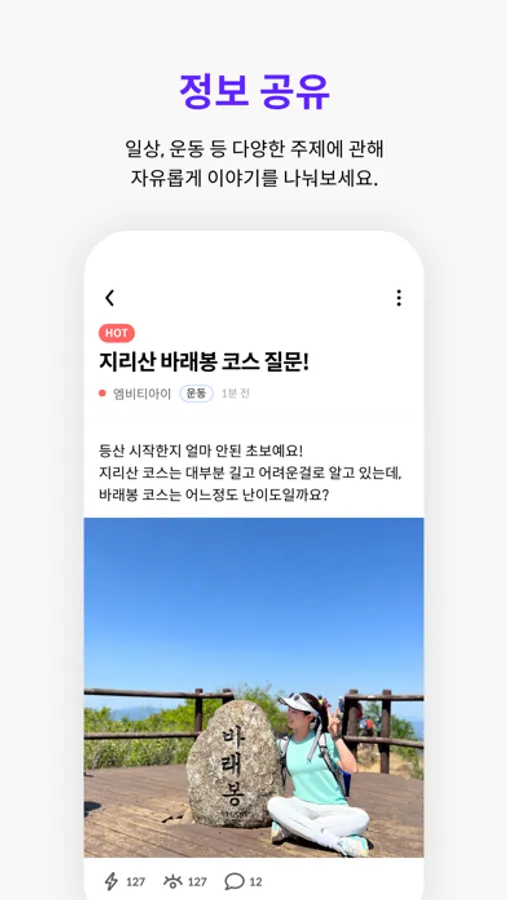 → 동성, 또래와 함께하는 등산 모임에 참여해보세요!