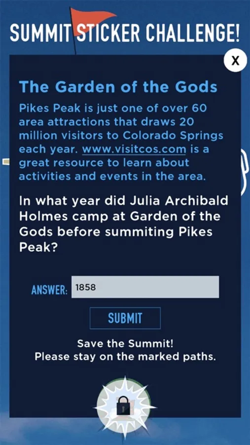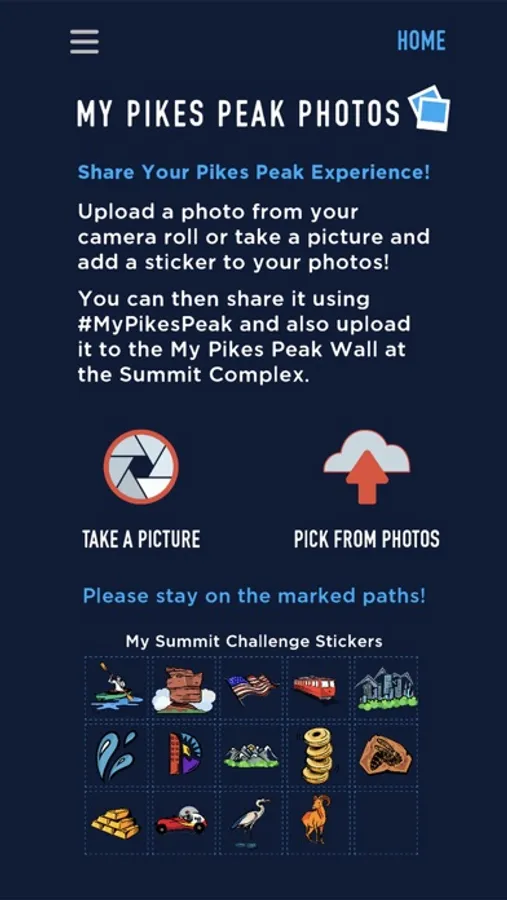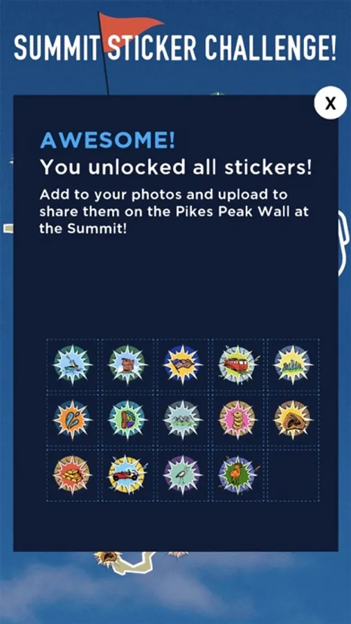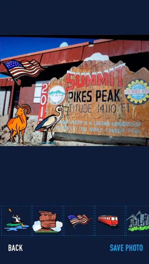 Customize your summit photos with stickers. Save to your gallery. Share on social media. Submit to Pikes Peak and your photo may appear on the interactive wall in the new Pikes Peak Summit Complex!