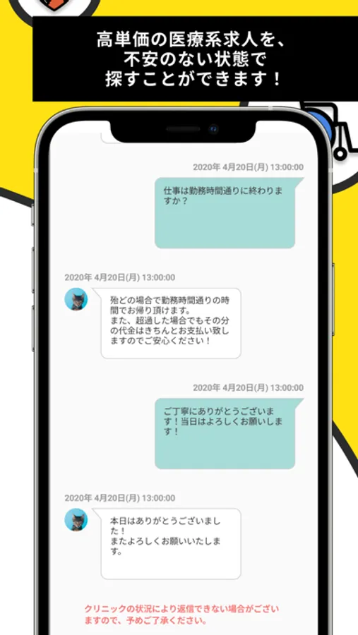 マップから近い場所の求人を探したり、クリニックとチャットでのやりとりも可能なので、予めどんなクリニックか知ることができます。