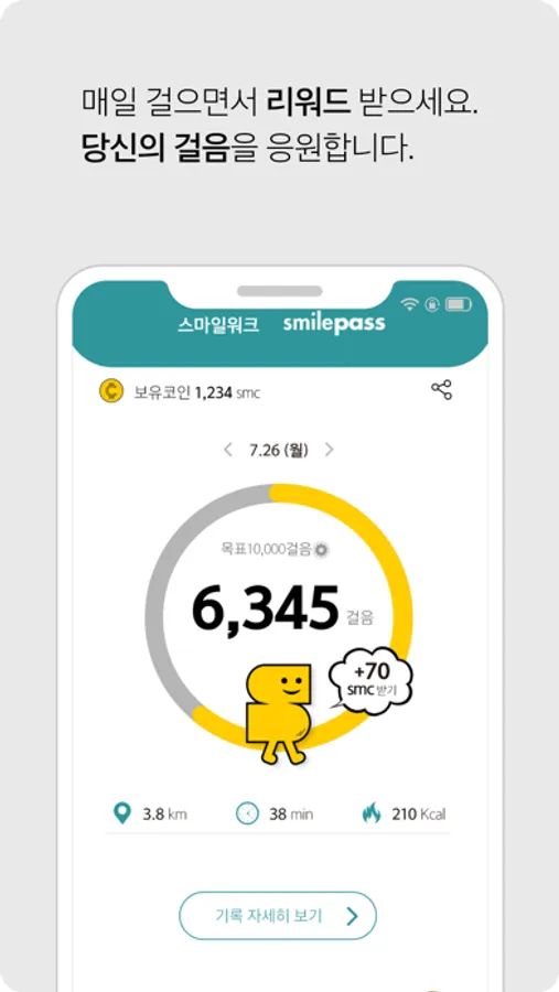 매일 걸으면서 리워드 받고 보너스도 챙기세요. 스마일패스가 당신의 걸음을 응원합니다.
