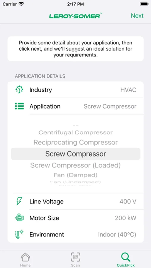 Provide some basic details including industry, application, and motor size, and the Leroy-Somer Digistart app will suggest a suitably rated model for each available product range. Select a recommendation to see a full list of features and products specifications, with the ability to share the document at the push of a button, or request a quote from your nearest Leroy-Somer sales office.