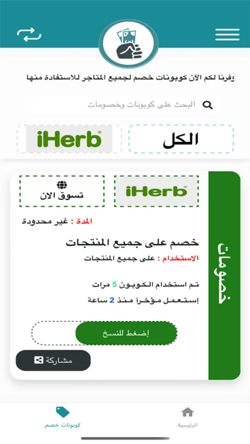 *كوبونات خصم للمتاجر ( iherb اي هيرب - نون - نمشي - سنتربوينت ..... ) والعديد من المتاجر