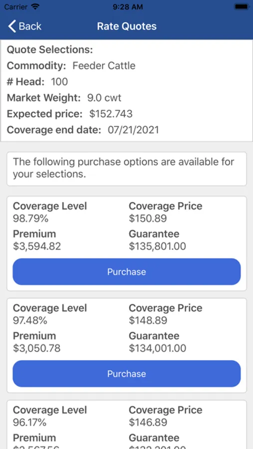 This app allows producers to get quotes and signup for Livestock Risk Protection insurance from participating crop insurance agents. This app makes it easy to compare coverage levels and complete the necessary forms to purchase insurance protection for feeder cattle, fed cattle, and swine.