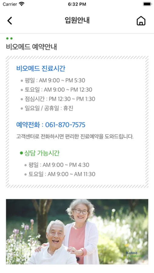 회원들을 위한 맞춤형 개인 진료일정 확인 및 스마트폰을 활용한 다양한 비오메드요양병원 정보 제공