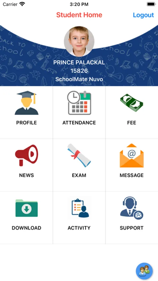 SchoolMate Nuvo facilitates users to access their ward's details like Attendance , Exam Performance, Home Work & Assignments, Fees , Messages and Alerts.