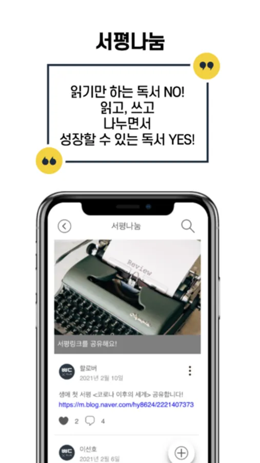 서로에게 책 추천이 될 수도 있고, 같은 책 다른 생각을 보면서 사고도 확장할 수 있습니다.