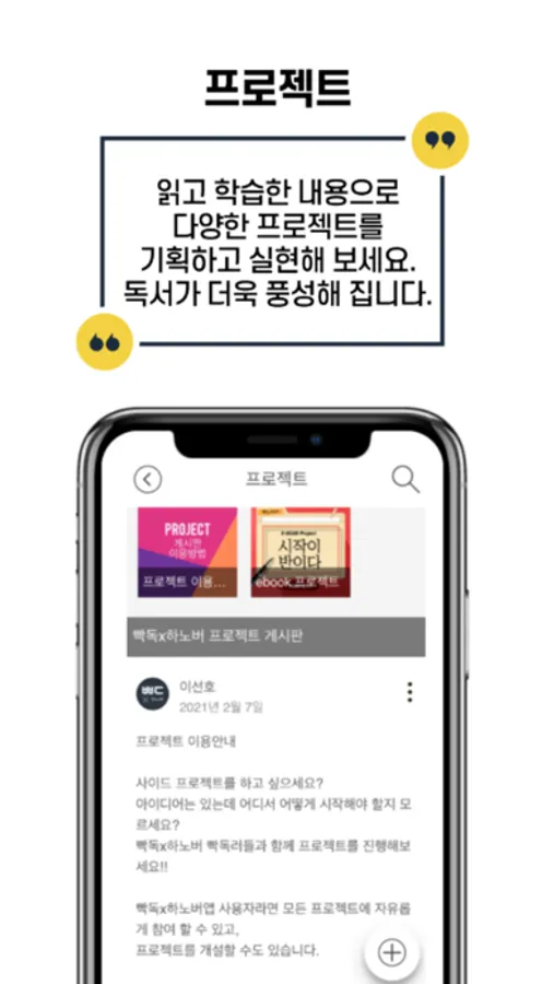 빡독x하노버 앱을 통해 나의 지식과 다른 사람의 지식을 연결하고, 프로젝트를 기획하여 실현시킬 수 있습니다.