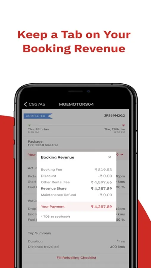 After sharing the car, you will be notified in the app about the bookings on your car & the revenue earned.
