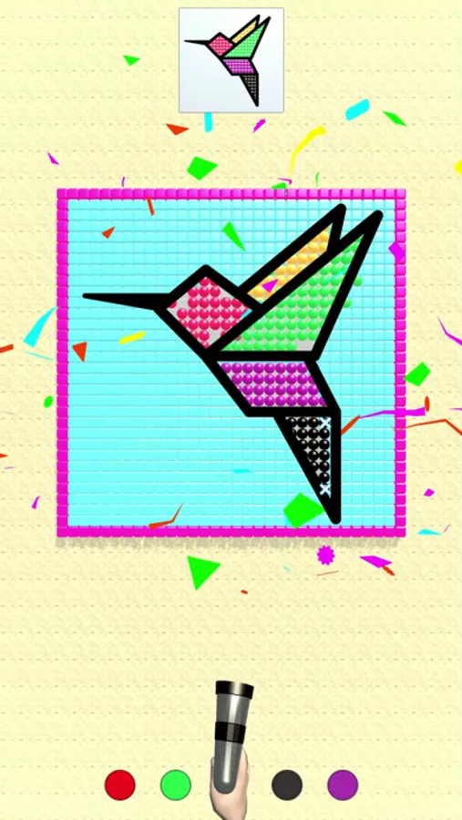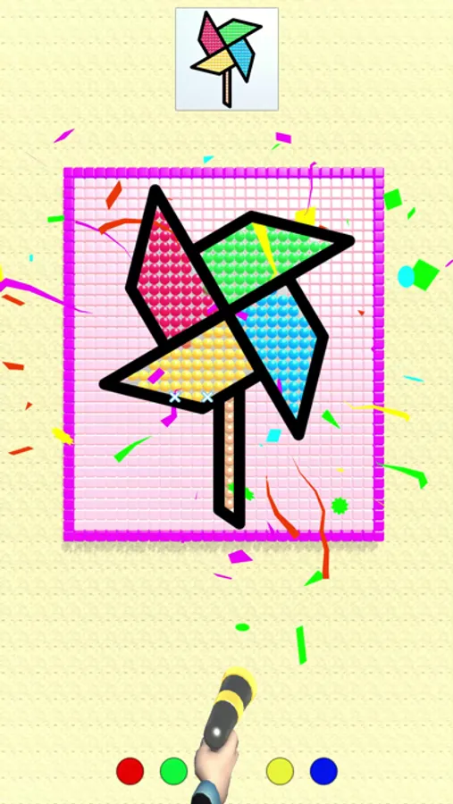 Create art by shooting the balls on the wall canvas. Fill in between the blocks and see your Shooting art skills come to life. The final Artwork will leave you mesmerized.