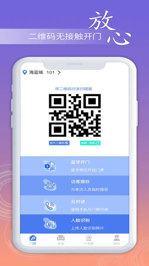 为华远社区业主开发的智能社区设备与服务软件,业主可轻松通过APP实现手机二维码开门、访客在线授权、在线上传人脸识别身份信息,还可通过APP查看社区天使眼,守护业主及家人安全,营造安心、便捷、舒适的社区环境。