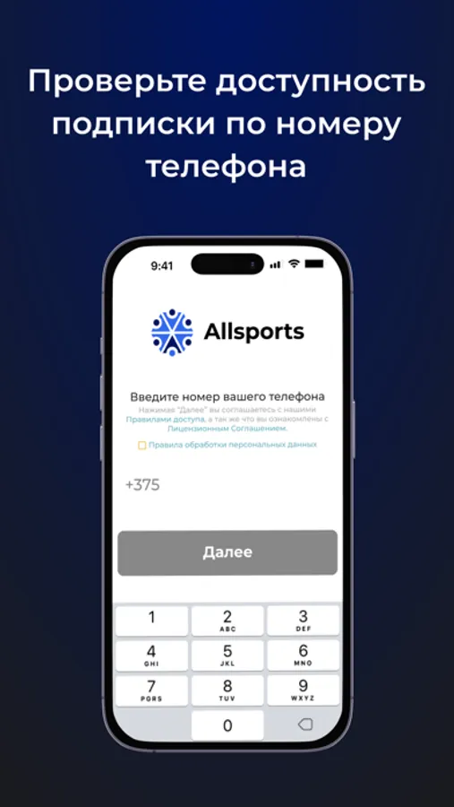 Signin with your phone, provided by you to Allsports. You will receive SMS code to complete signin in app.