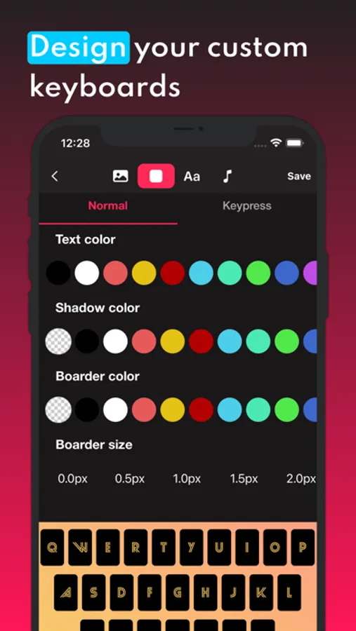 You can find many aesthetic keyboards and Customize them or create your keyboard from the scratch with tons of customization option like background image, background colors, font, button sounds, button shadow, button border, etc. also, you can have your own keyboards library and edit them any time or switch between them.