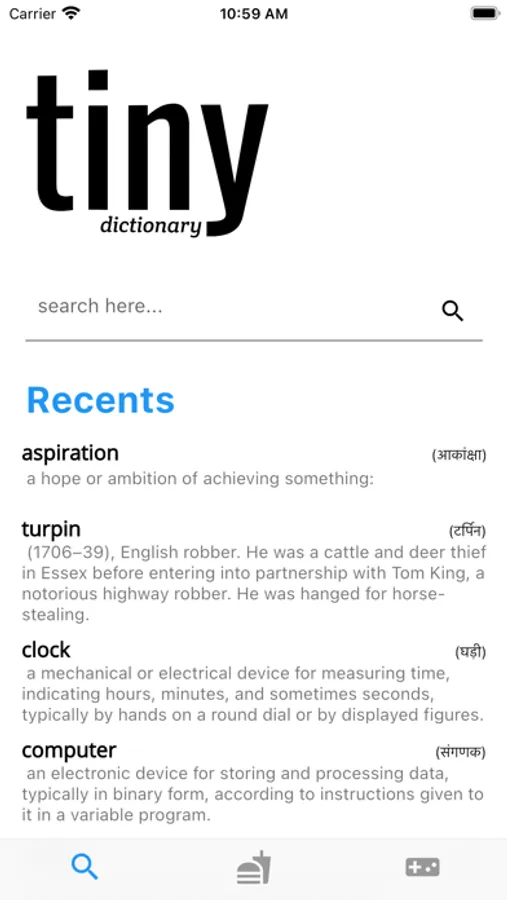 2. See recently searched words with their top meaning when u launch app right there on the home screen.