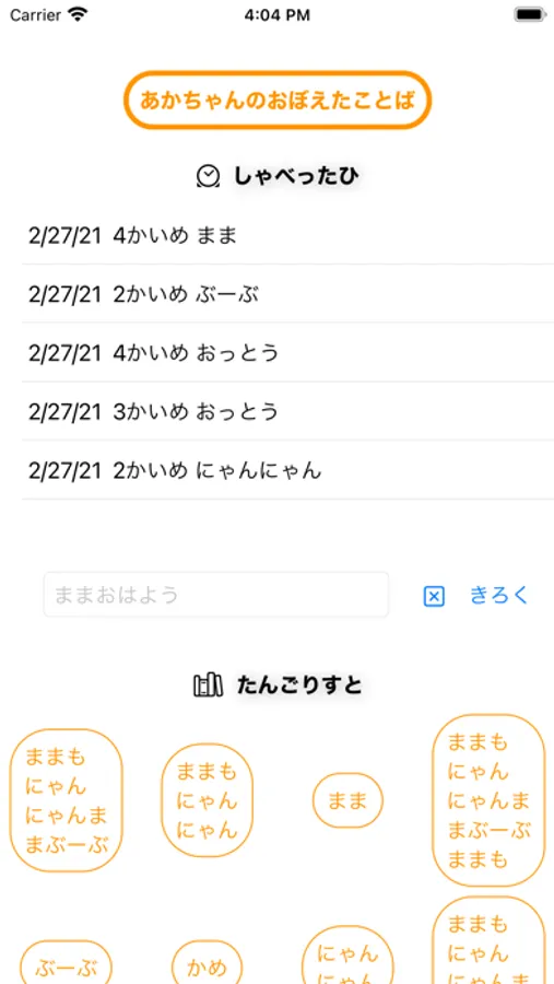 忙しい育児の合間に、さっと言葉を記録するアプリです。