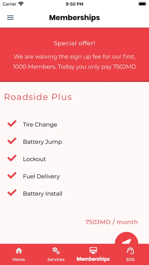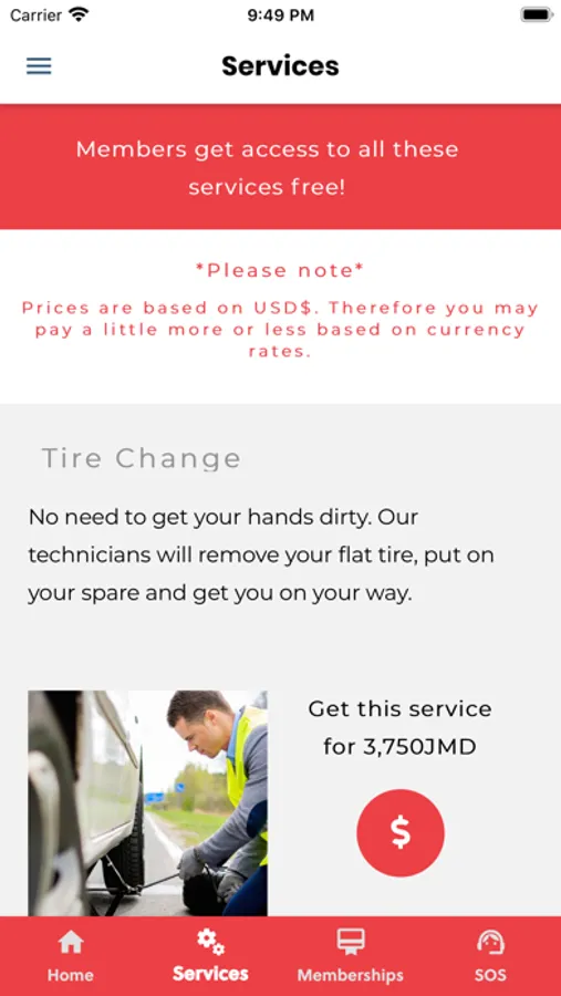 There’s never a charge for services like gas delivery, tire change, unlocking, jump-starting or towing within 20 miles. Even better, your spouse and dependent driving-age children are covered if you choose the family plan Quick Chat or call us by clicking on SOS through the App.