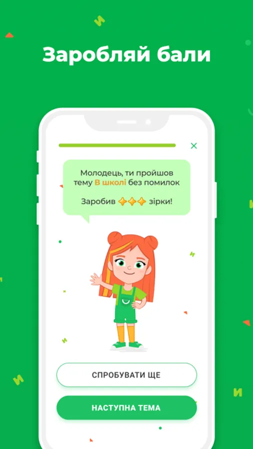 Це мобільний додаток переважно для самостійного вивчення української мови учнями початкової школи (2-4 класів), для яких рідними в Україні є мови національних меншин.