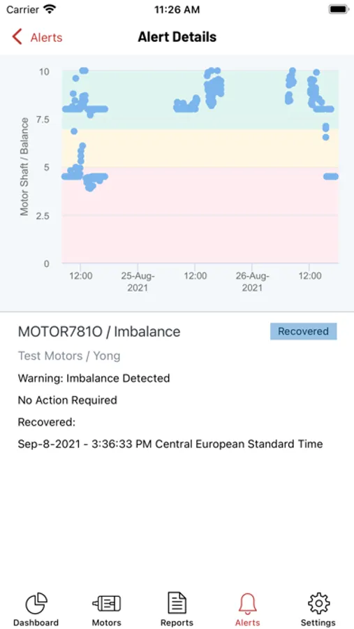 • View plots and charts captured by the SMS, including Vibration RMS, Time Waveform and FFT