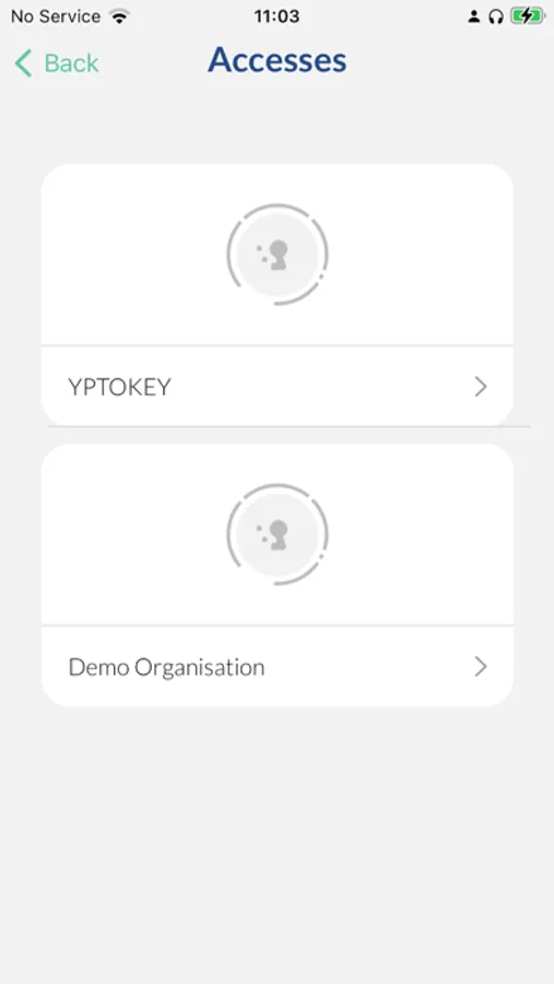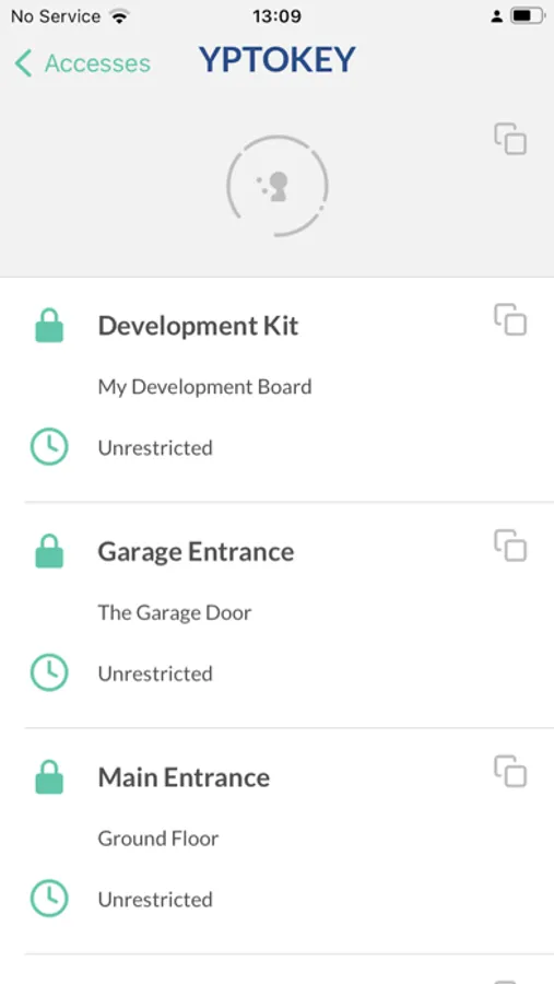The YPTOKEY application supports multi-tenancy so you can use it in places to which you have access even if they are in different organisations. Each access permission you have is listed in the application with information for its time restrictions if such are applied. Once the accesses are received you can lock/unlock the assets even when your mobile device does not have an internet connection.