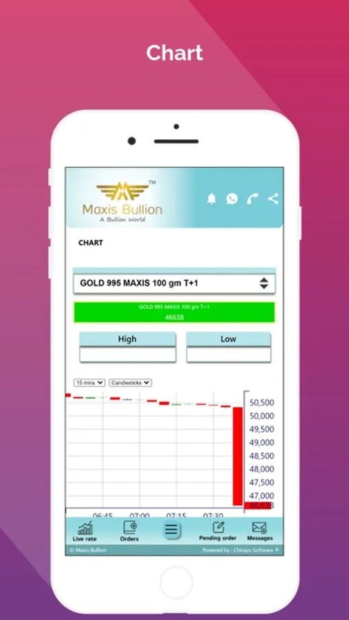 Our app also shows LIVE CHART interpretetion of gold rates.