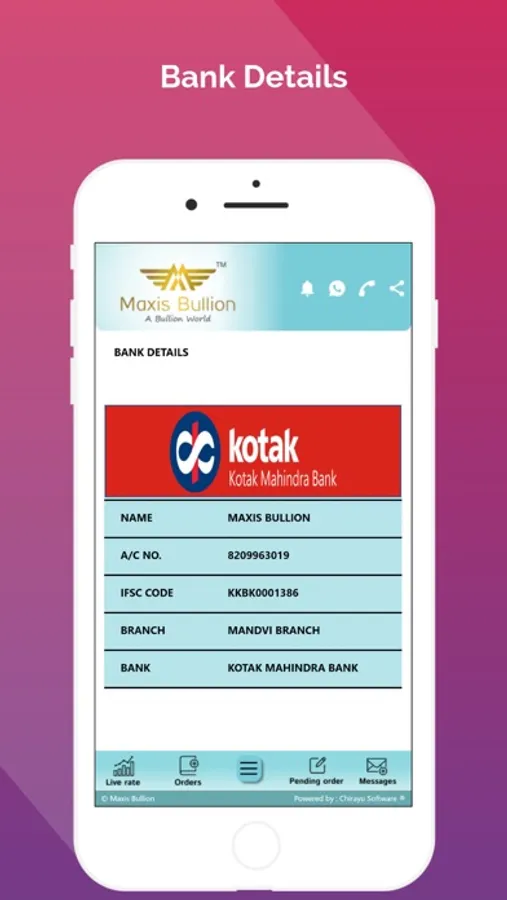 To facilitate our clients with convenience of online payment, all the BANK DETAILS of our company are listed out in the app .