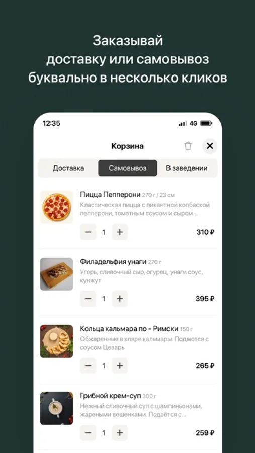 — Быстрый заказ с мгновенным подтверждением через приложение.