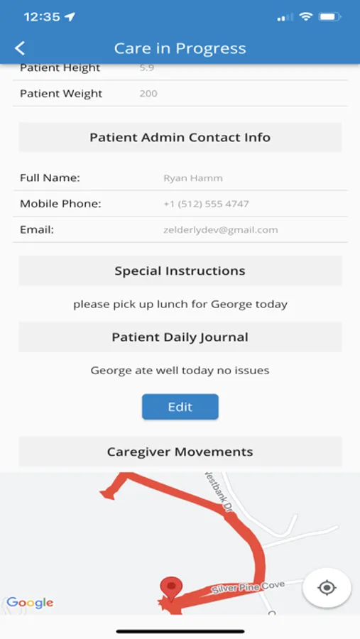 • Ability to track Caregiver movements via iPhone location services while Caregiver is checked in and caring for patients.